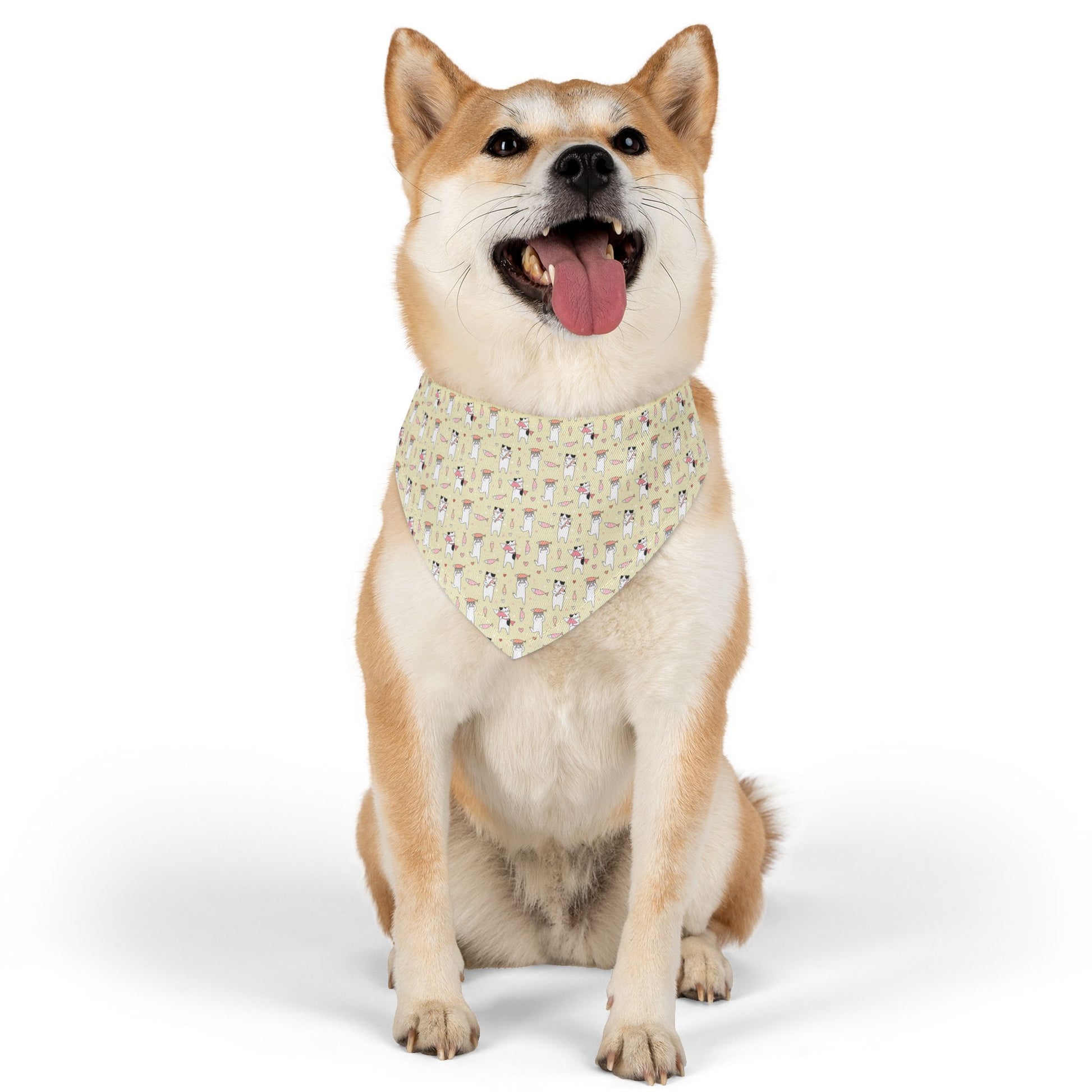 Give your pet a playful and stylish look with our Sushi Cat Pet Bandana! Featuring a whimsical print of adorable cats wearing sushi hats and playful fish details, this design is perfect for feline fans and foodie pets alike. Made from soft, breathable fabric, it’s comfortable for all-day wear and purr-fect for special occasions, walks, or cute photoshoots. Let your pet roll into cuteness with this unique bandana! 🍣🐱🐾✨
